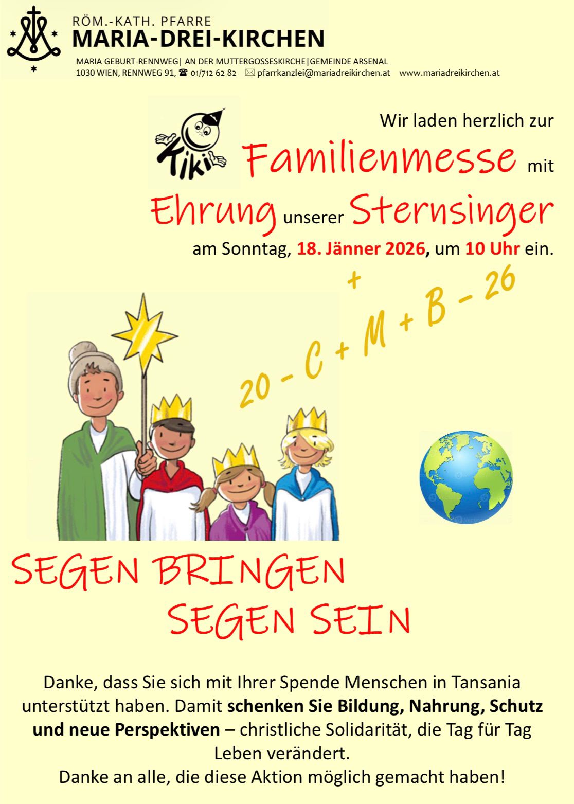 Einladung zur Familienmesse mit Ehrung unserer Sternsinger